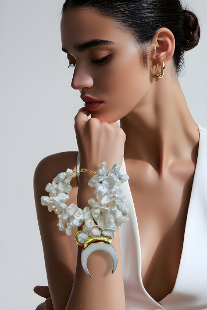 This gorgeous Bracelet is thick and is a summer must have. This beauty is made with fresh water pearls. The Horn is made with fresh water pearl, Shell and coated with 24k gold plating.