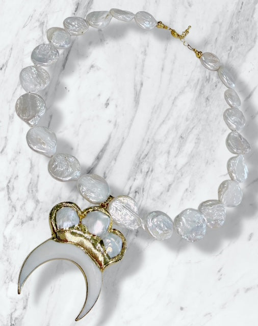 This gorgeous Necklace is a summer must have. This beauty is made with fresh water pearls. The Horn is made with fresh water pearl, Shell and coated with 24k gold plating.